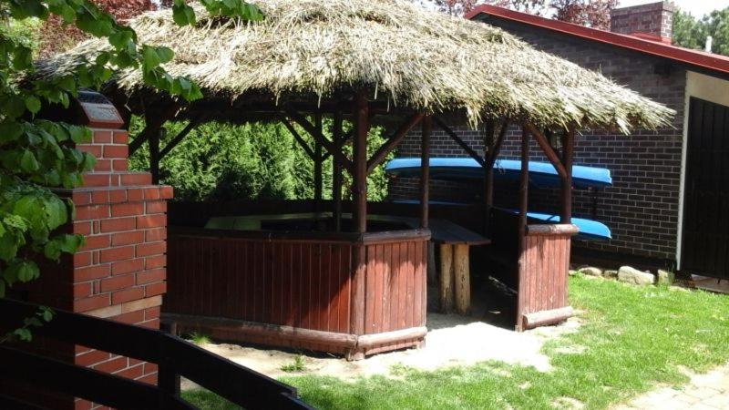 Dom z 1 sypialnią. Featuring 1 bedroom and 1 bathroom with a walk-in shower, this holiday home offers a well-fitted kitchenette and a terrace. Guests will find a stovetop, a refrigerator, kitchenware and an electric kettle in the kitchenette. The holiday home also offers a barbecue. The holiday home provides a flat-screen TV, a wardrobe, a tiled floor, heating as well as lake views. The unit has 2 beds. Powierzchnia pokoju ok.: 20 mkw. ;