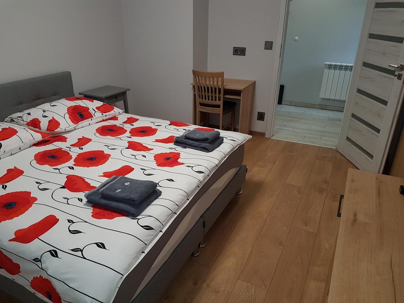 Apartament – parter. Featuring a private entrance, this apartment comprises 1 living room, 1 separate bedroom and 1 bathroom with a walk-in shower and a hairdryer. Guests will find a stovetop, a refrigerator, kitchenware and a microwave in the well-equipped kitchenette. The apartment also provides guests with a barbecue. Boasting a balcony with ancourtyard view, this apartment also provides a wardrobe and a flat-screen TV with satellite channels. The unit offers 3 beds. Apartament - 4 osobowy. Powierzchnia pokoju ok.: 40 mkw. ;