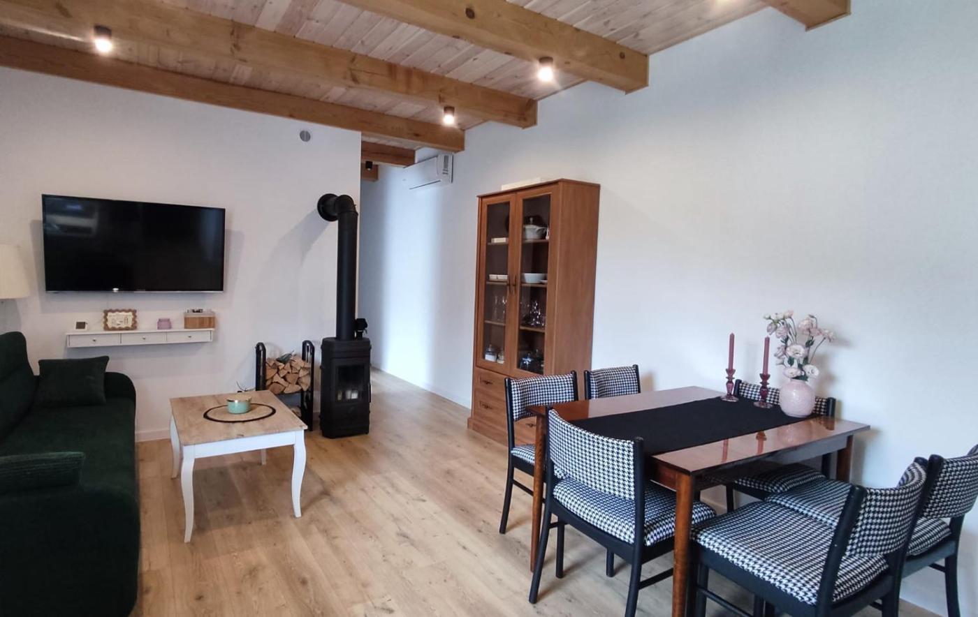 Dom z 2 sypialniami. The fireplace is the standout feature of this holiday home. Guests will find a stovetop, a refrigerator, kitchenware and a microwave in the kitchen. The holiday home also comes with a barbecue. This air-conditioned holiday home is comprised of a flat-screen TV with streaming services, a shared bathroom as well as a terrace with garden views. The unit has 3 beds. Dom wakacyjny - 4 osobowy. Powierzchnia pokoju ok.: 56 mkw.
