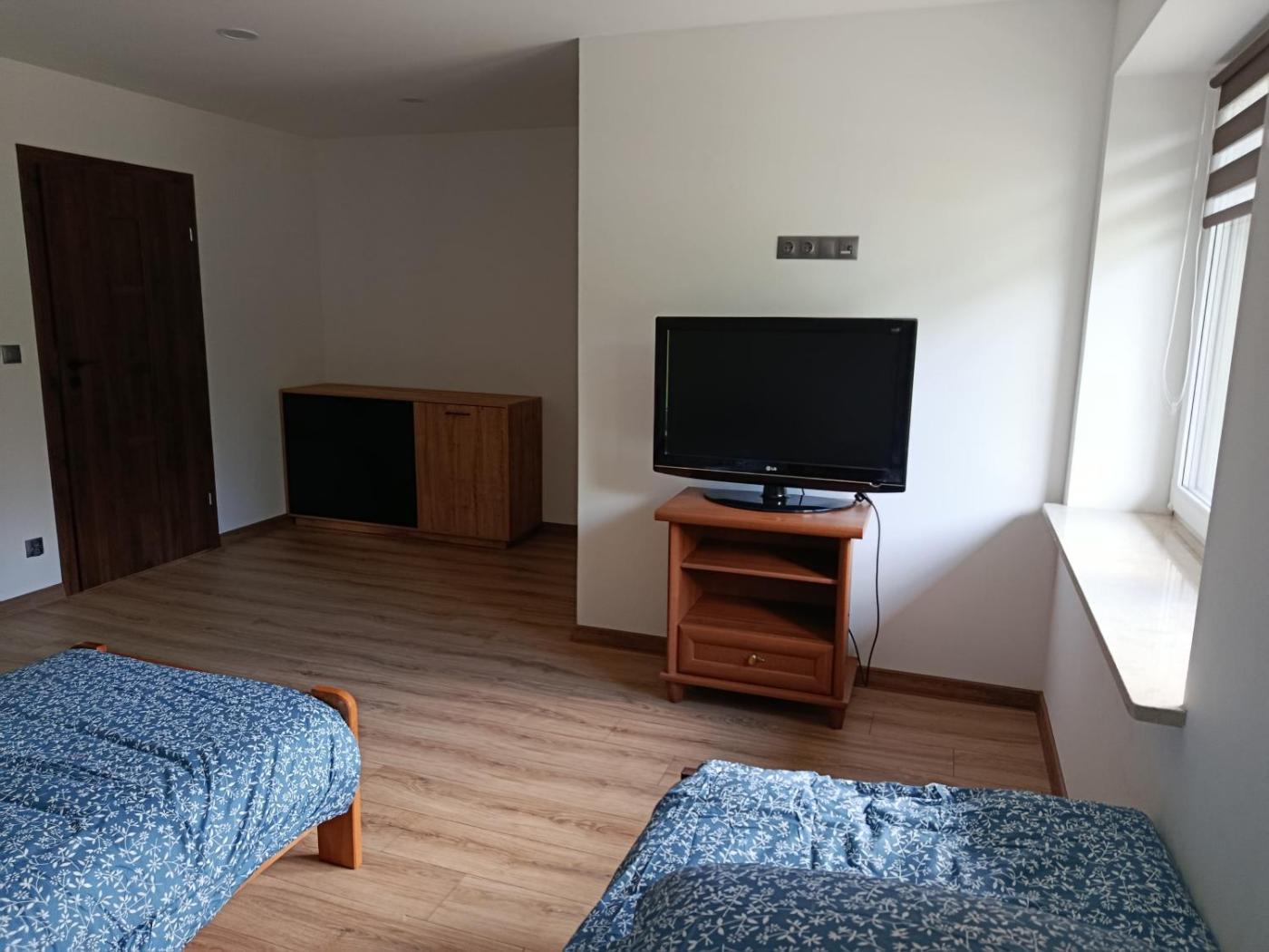 Pokój trzyosobowy. In the kitchen, guests will find a refrigerator, kitchenware and a microwave. This triple room has a private bathroom, a tea and coffee maker, a dining area as well as a terrace. The unit has 2 beds. Pokój Trzyosobowy - 3 osobowy. Powierzchnia pokoju ok.: 20 mkw. ;